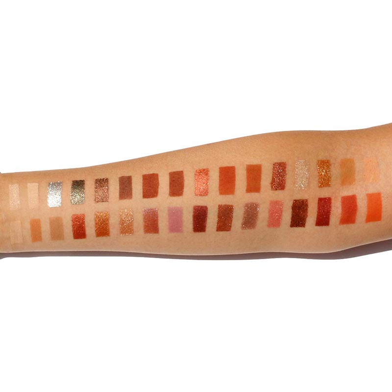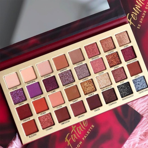 Paleta con 32 colores que además es una paleta con espejo, suaves, altamente pigmentadas, de larga duración y que se pueden mezclar.
